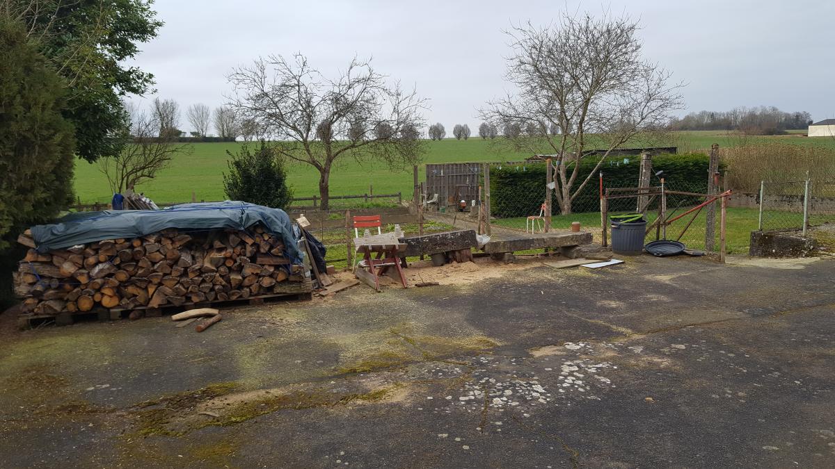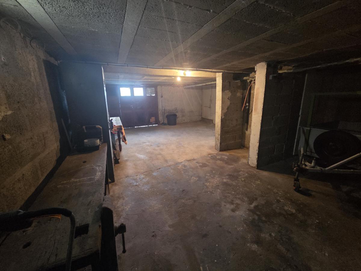 tuiles mécaniques, tout à l’égout. Cour bitumée, jardin clos, 2e garage sur le côté.