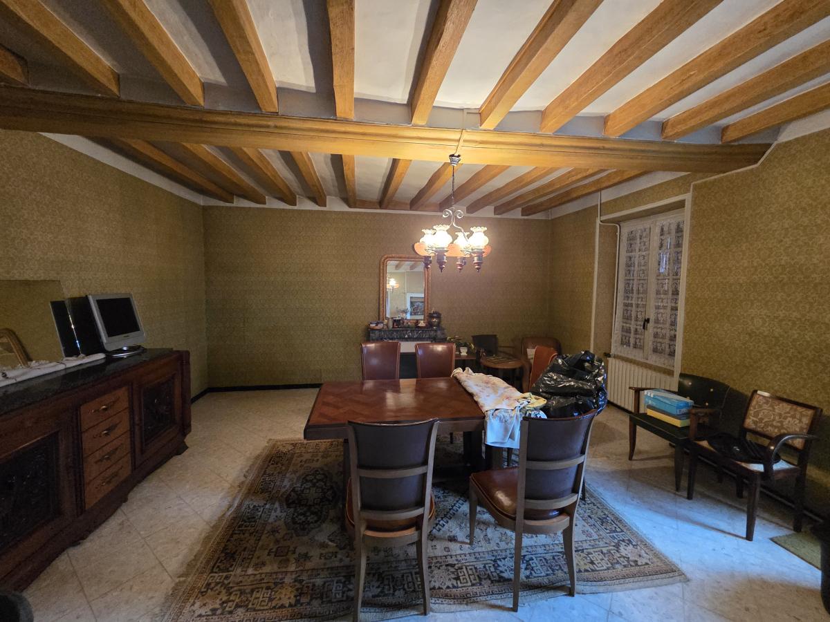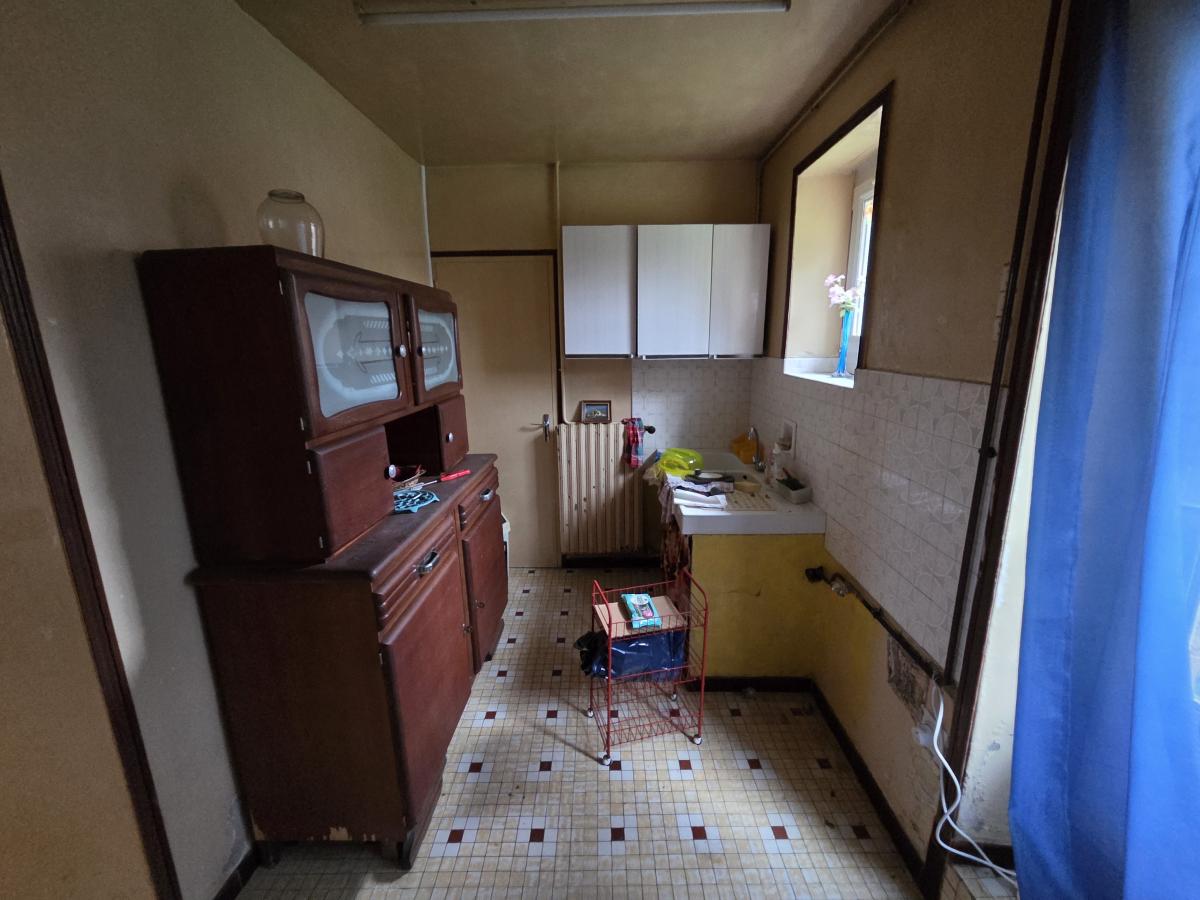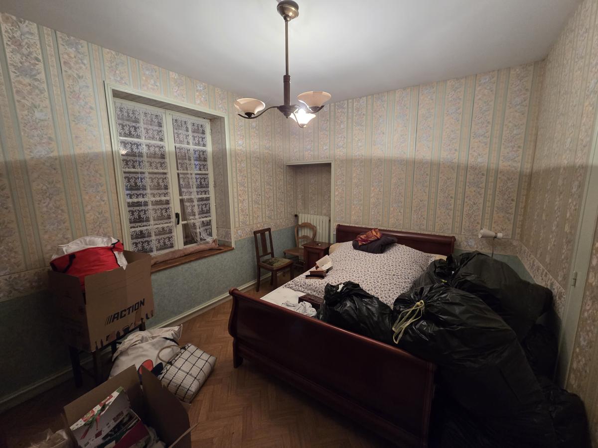 RDC : Salle à manger et salon avec cheminée, cuisine (non aménagée), 2 chambres, salle de bain, WC, cave, chaufferie.